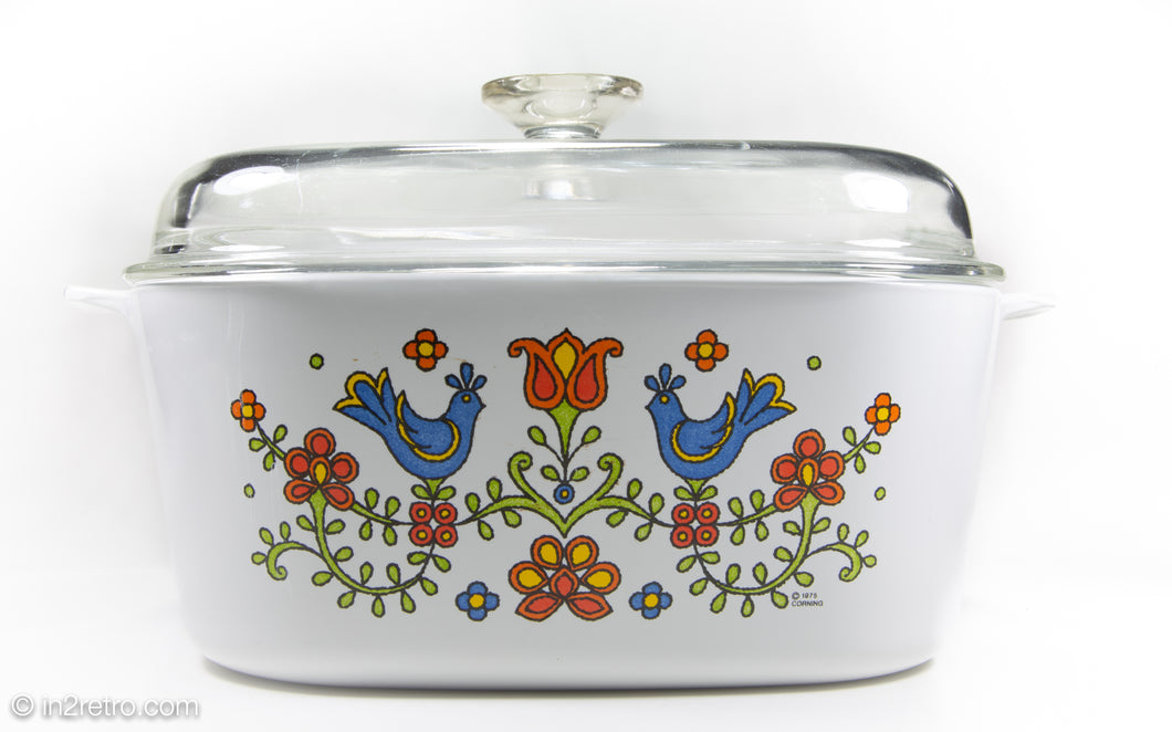 VINTAGE CORNINGWARE/PYREX "COUNTRY FESTIVAL" 5 QUART CASSEROLE DISH WITH COVER | 1975