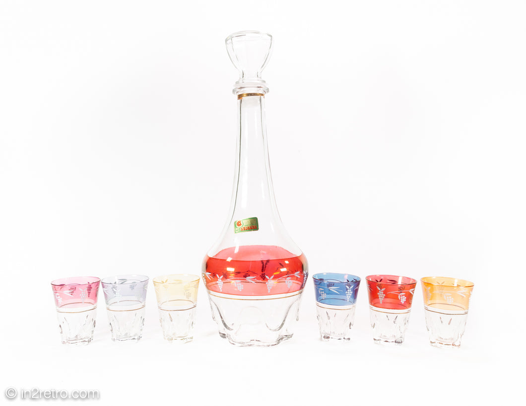 SPA LUBIANA 8 PIECE SET - DECANTER WITH STOPPER AND SIX SHOT GLASSES | MADE IN ITALY| NEW IN BOX W/ LABEL