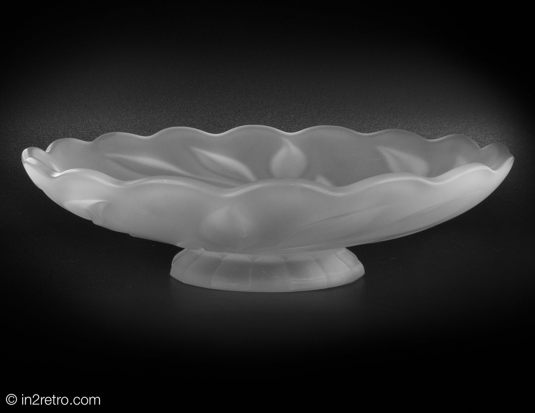 VINTAGE FROSTED CAMPHOR GLASS FLORAL PEDESTAL BOWL